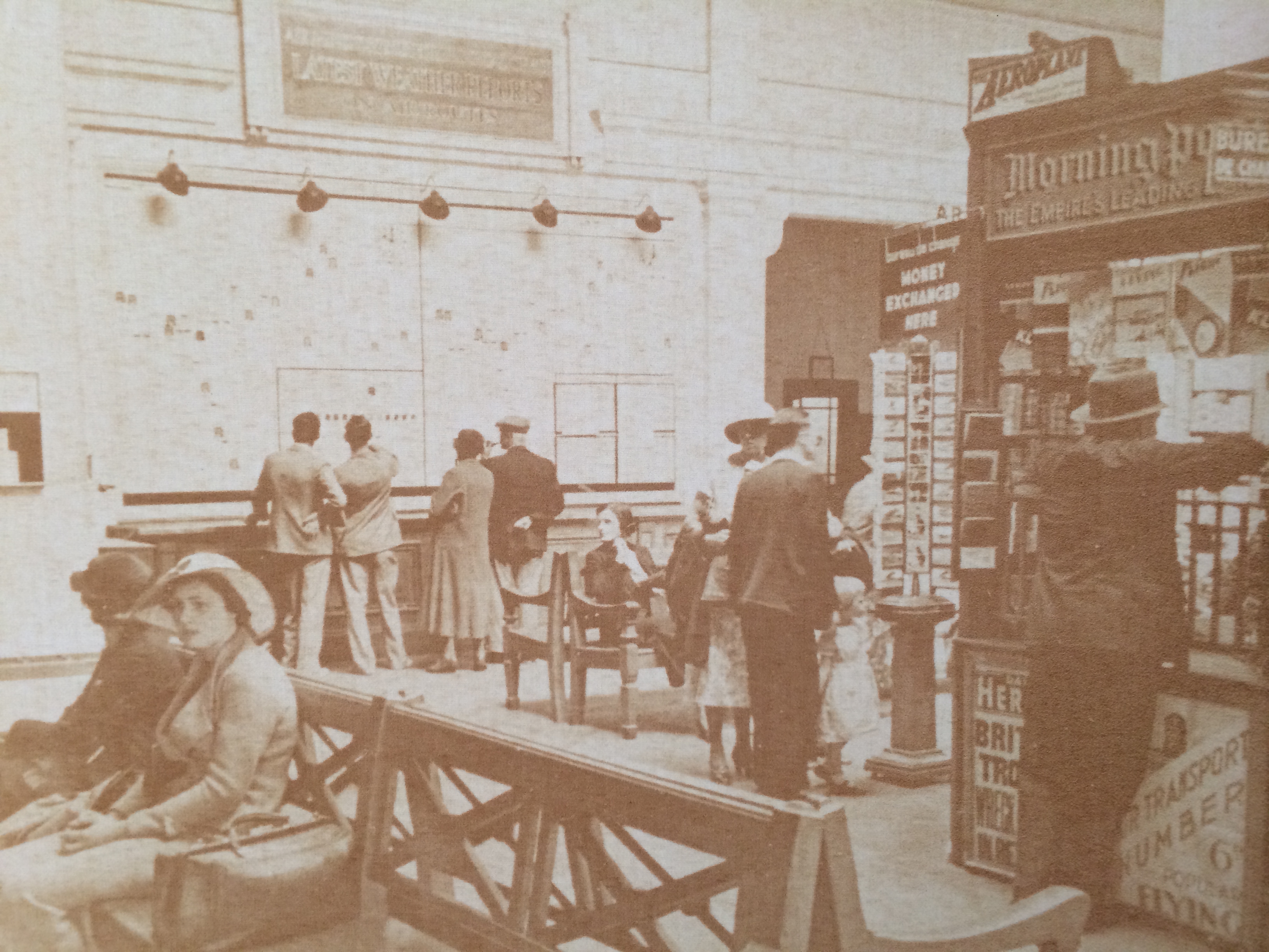 And there was a wooden pillar – sadly lost – with clocks showing the time in numerous world cities. Given that departures and arrivals were listed it doubled up as an early indicator boards. Passengers could also keep track on international weather thanks to a large map that was updated by hand every hour.