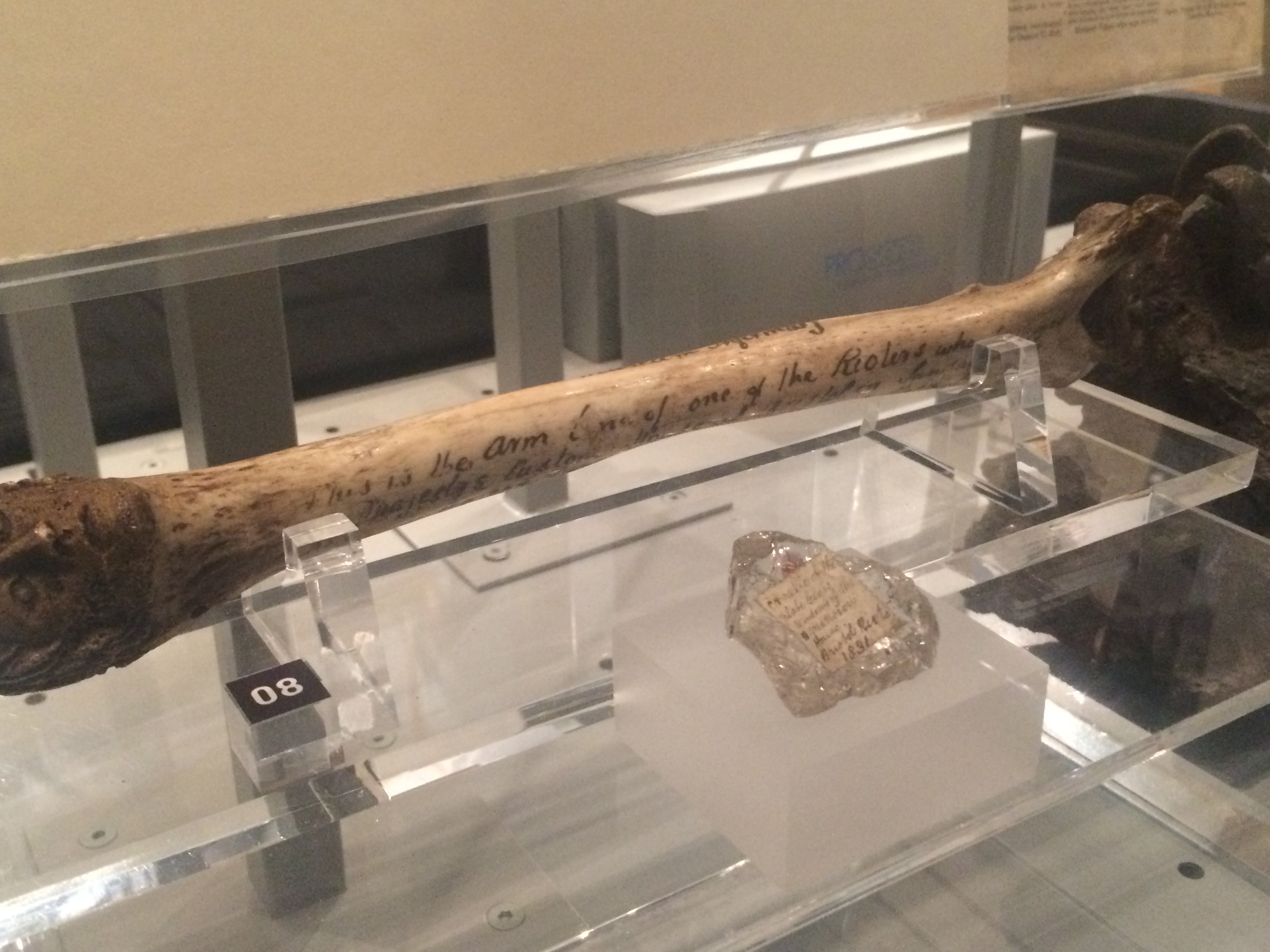 Upper arm bone of unidentified man disovered in ruins of Custom House a year after the Bristol Riots (in M Shed)