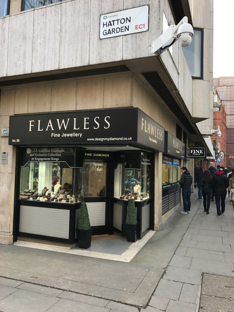 I worked near Hatton Garden for some years and didn’t really stop to take in what the shops offered as I rushed along this stretch to grab a sandwich and then head back to the office. For those marking a special occasion it is a different matter – couples spend literally hours visiting the different jewellers here. There are literally hundreds of associated businesses here, making it the capital’s jewellery quarter and the centre of the UK diamond trade.
