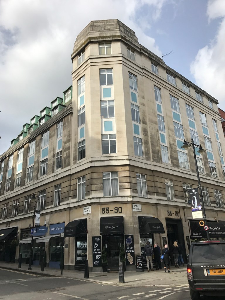 In the course of her research she met someone who remembers when Hatton Garden was “an ordinary shopping Street with a smattering of jewellery shops and businesses connected to the trade, lots of offices, a tobacconist, restaurants and of course [the long gone department store] Gamages.”