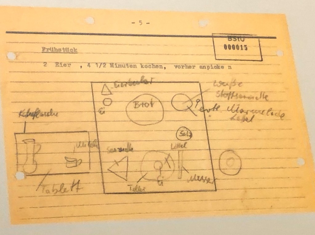 From 1962 Mielke ran the Ministry of State Security from new headquarters in Normannnestrasse, East Berlin. The main building is now the Stasi Museum and on the second floor you can visit what was known as the Minister’s Level, which remains mostly unchanged from when it was in use by Stasi senior leadership. There’s the conference room where important meetings were held at a long table, as well as Mielke office where important visitors were received. On his desk are the telephones with direct dials for reaching senior SED officials and the Soviets. But what I found particularly intriguing was the reproduction of a diagram in his former kitchen that showed exactly where he wanted breakfast items to be arranged on the plate. This was a man who knew exactly what he wanted.