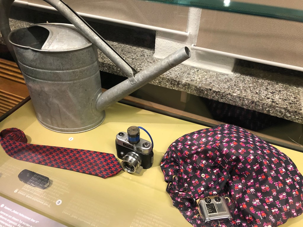 Today at the Stasi Museum, as well as seeing the suite of Stasi leadership offices, there are displays of the equipment used for bugging and spying (including hidden cameras in everything from ties to watering cans) on citizens. Agents employed a variety of disguises, including dressing as tourists.